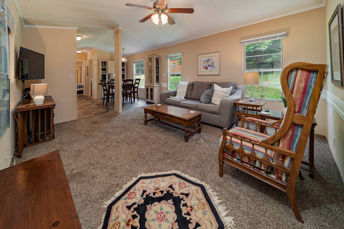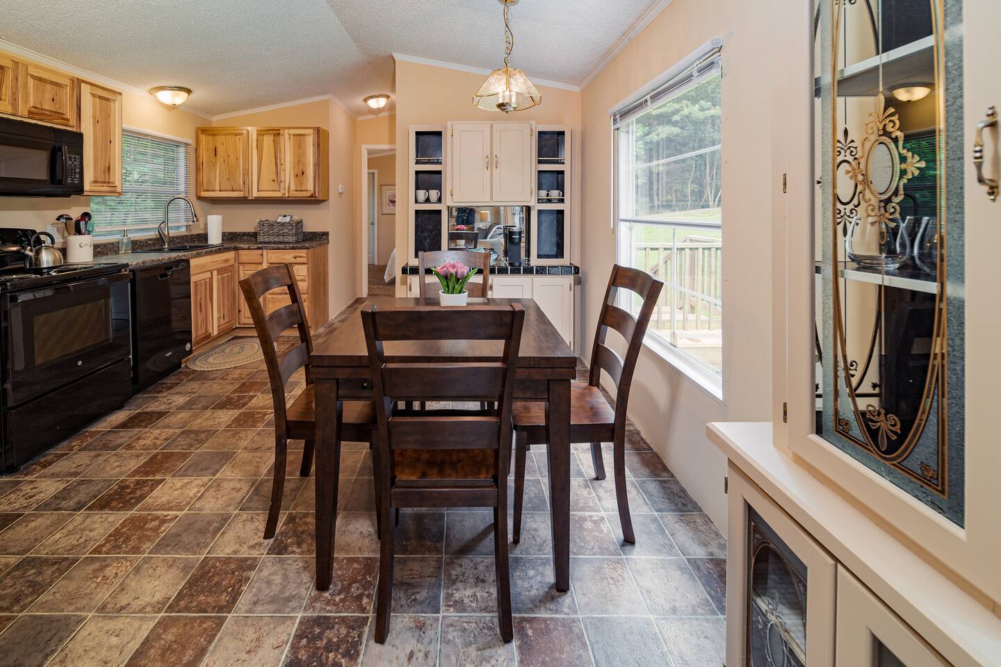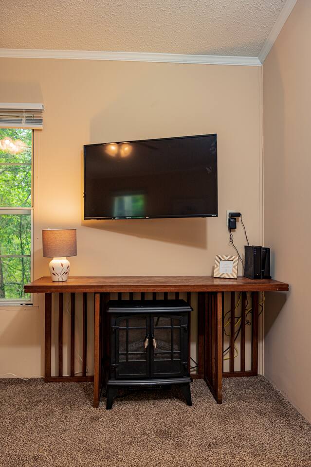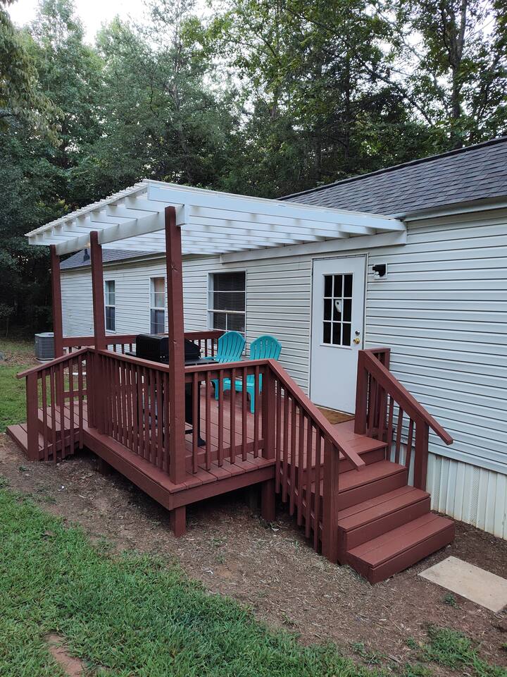 BONUS AMENITY This home comes complete with a SC State Park Pass, which will get one vehicle FREE admittance to all 3 local state parks. We've also included a fun guide to each park so that you can best plan your stay. We can't wait for you to experience the best that the upstate has to offer. ---- Our lovely remodeled 2 Bedroom 2 full bath mobile home is located close to the top of a hill on a fairly wooded property and private, quiet backyard. There's a large covered deck with gas grill for fun outdoor activities. We offer a portable campfire ring for peaceful evenings. (Campfires require pre-approval) The home has been fully updated, with a brand new kitchen and 2 new bathrooms. A split floor plan gives each room plenty of privacy, as the Master suite, featuring a King bed, Roku TV, attached bathroom, an electric log fireplace to add ambiance and walk-in closet, is on one side of the house, while the hall bathroom and adjacent twin bedroom is on the other side. The twin room features two twin beds and a small closet. Our living area has a lovely plush gray sofa, and a fun accent chair. Also included is a dedicated workspace with direct WiFi connection. An open kitchen and dining area complete the home. Our kitchen is well-equipped with all you will need to cook a fantastic meal, and our coffee bar is stocked with Keurig pods, creamer, and some complimentary snacks. Pets and Pet Amenities We love pets, and welcome them into our home. We include "dirty dog towels" for you for cleaning their paws and any messes and even provide a few treats. All pets must be disclosed to the host and a $100 pet fee will be requested after you book. This helps to pay for additional cleaning needed resulting from our furry friends. If bringing 3 or more pets, this fee could be raised. This is up to the host's discretion. Thank you for understanding. We can assure you that Cozy Terrace will far exceed your expectations. We can't wait to share this little hideaway with you. Looking to travel with a bigger group? Check out The Travelers Nest, a large home that sleeps 9 located down the hill. A convenient trail through the woods "connects" the two. We hope to see you soon!